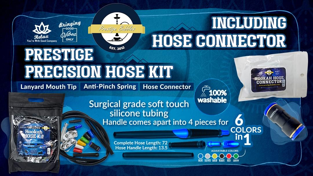 Customize your style by matching the color of the hose to the color of any hookah you have with the interchangeable color set! Connect your Prestige Precision Hose to the "2 into 1" Hookah Hose Connector and you can